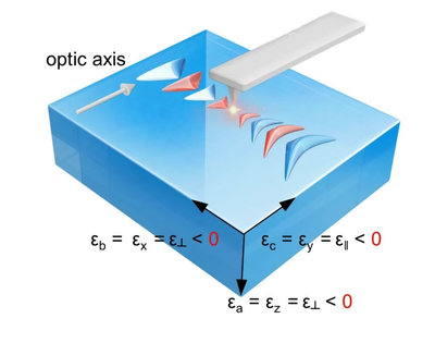 图2:非双曲材料钒酸钇晶体表面双曲极化激元的近场实验示意图 图源:Nature